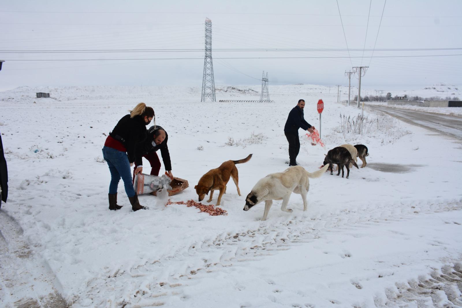 Afyon esnaflarından Göksel Bakışkan ise, “Kış günü bu şartlarda aç kalan köpeklerimize yardımcı olmak için Salih ustam ile beraber yine yollardayız. Bugün ise MHP Milletvekilimiz Mehmet Taytak Bey’in göndermiş olduğu mama ve yiyecekleri sokak hayvanlarına dağıttık. Kendisine bu duyarlı davranışından dolayı teşekkür ediyorum. Sokak hayvanlarımıza yardım da bulunmak isteyen hayırsever vatandaşlarımız bizlere ulaşabilirler. Bu kış gününde sokak hayvanlarımızı yalnız bırakmayalım” dedi.